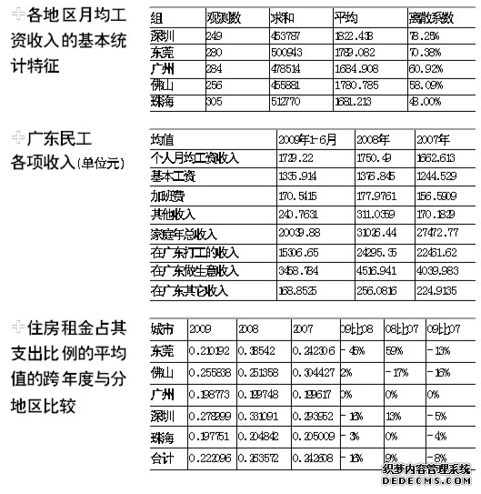 在劳动强度增加的同时,农民工的福利待遇并没有相应地提高。农民工月收入包括基本工资、加班费、其他收 入三项。但调查发现,2009年加班费收入为0元者为839人,但工作时间为1-8小时者仅有640人,也就是说有199人有加班,但是没有加班费。调查 显示,与2008年广州市居民家庭人均消费性支出18951元、增幅16.6%相比,农民工消费支出增幅还不及广州市民的一半。