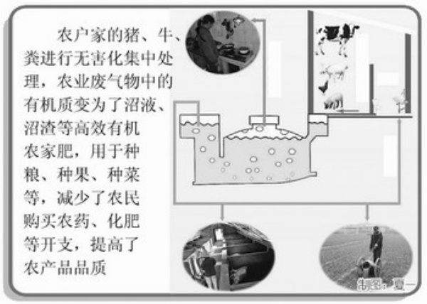 “施用沼气肥的水稻田,三年后,土壤有机质含量提高了16%,不仅减少了农业投入,而且大大减少了环境污染。”