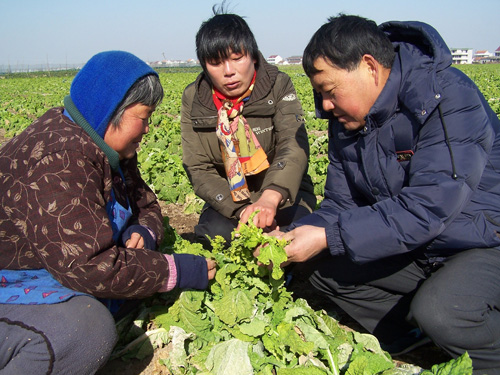 就在大伙儿为种上“摇钱菜”高兴不已 时,2007年,南通一家外资食品企业慕名找到钱汉忠,希望在当地开辟500亩从日本引进的“冬华菜”基地。面对与金华菜相似的种植、培管、采摘模式特别 是保护价包销,农户们一天内“抢”光了全部合同种植指标。就此,冬华菜成了乡亲们又一棵“摇钱菜”。