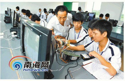 该校目前有教职工160多人,在校生3000多名,开设专业10多个。近年来,学校的毕业生供不应求,就业率均保持在98%以上。图为5月20日,琼海市职业中等专业学校的学生们正在学习电子设备维修技能。