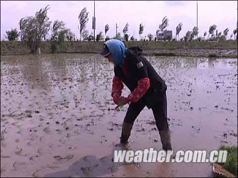 记者发现,田里的稻苗看起来很纤细,栽插的稻苗之间距离也比较稀疏,稻苗数量少和质量差主要原因就是育苗期间的持续低温。