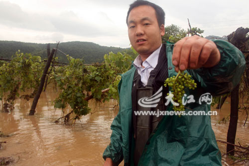 江西新余:葡萄园被淹,村民心痛不已。(图片来源:大江网)