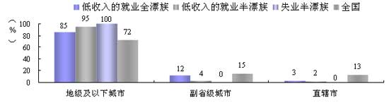 图 2009届大学毕业生就业弱势群体的生源城市类型分布