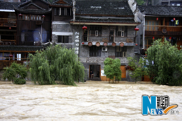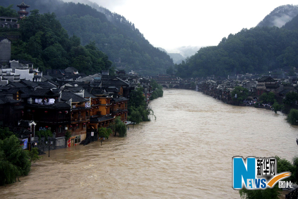 6月8日,沱江水位暴涨,凤凰古城部分街道被淹。新华社发(黄晓军摄)
