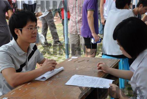 6月27日,求职者在柳州广西工学院校园举行的对接会现场应聘。当日,广西柳州举办“助推就业,放飞梦想”2010年青年就业创业见习基地见习及招聘岗位对接会,30多家青年就业创业见习基地参加对接会,共提供了800多个岗位。