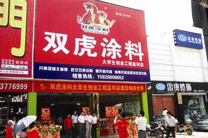 由共青团湖北省委、武汉双虎涂料、省青年创业就业中心联合举办的“双虎涂料——大学生创业工程”第一阶段活动圆满结束。目前,首批大学生创业店已在京山、监利、麻城、宣恩等地开张。