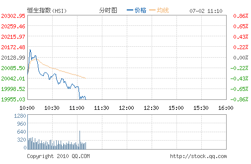 总结:恒指低开263点,收跌120点或0.59%,报20,129点,波幅 19,971–20,143。成555.47(前一交易日成交590.47)亿港元,恒指占36%、国指占26%。金融分类指数跌352点,收 30,324点;地产分类指数跌306点,收25,459点;公用分类指数升306点,报41,135点;工商业分类指数升11点,报10,879点。7 月恒指期指收报20,079点,低水50点,成交68,078张。国指低开215点,收跌70点或0.61%,报11,466点,波幅 11,291–11,472,成交143.10(前一交易日成交120.31)亿港元;7月H股期指报11,415点,低水51点,成交34,720张。