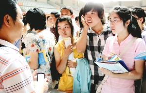 扬州网讯 昨天,由省考试院、省高校招生就业指导中心和市人才市场、市招办等单位举办的江苏省2010年高校招生咨询会(扬州分会)在扬举行,来自江西、山东、上海、南京等地的160多所高校参加活动,现场许多考生及家长纷纷聚集到职业技术类院校,咨询有关将来的就业问题。