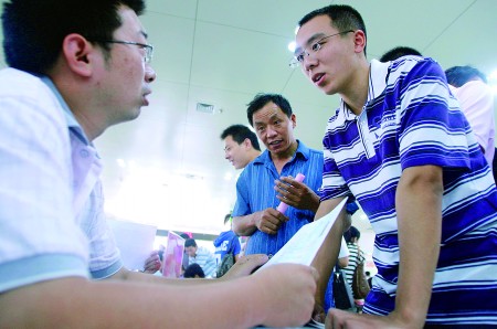 29日,一名大中专毕业生在咨询求职事项。当天,由泰安市总工会、泰安市人力资源和社会保障局联合举办的“劳模企业家牵手大中专毕业生就业援助特别行动启动仪式暨现场招聘会”举行。