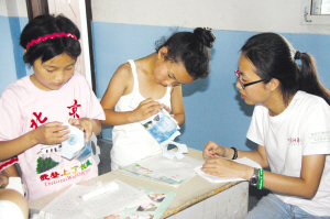 绿色长征志愿者在义务教孩子手工(图片来源:扬子晚报)
