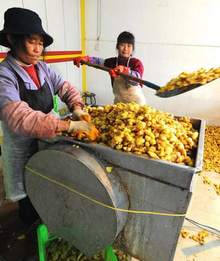 近年来,云南省罗平县板桥镇加大调整农业产业结构力度,组织农户成立专业合作社,大面积推广种植黄姜,并建立规范的黄姜专业交易市场,形成姜产品绿色产业链,鲜姜及姜制品远销新疆、内蒙古及日本、韩国和海湾地区。2010年全县黄姜产业创造产值5.3亿元,种姜农民年人均增收500元。