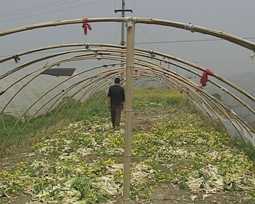 菜农不得不将大棚里的蔬菜打碎埋入地下当肥料