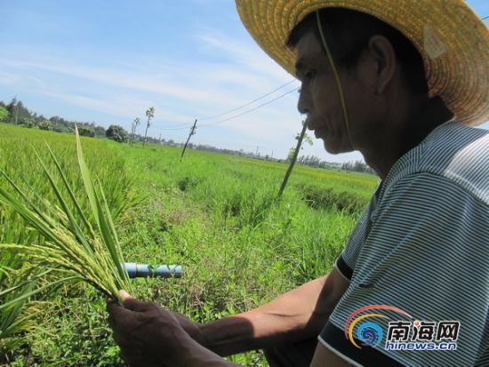 在南海网记者走访时,碰到了田间护理水稻的老汉殷春忠,他说,他家种植的1亩稻田是在北坡墟集庄村委会窝子村内,种植的是“天优2169”稻种,自从他懂事以来,就一直种植水稻,已经几十年了,从没出现过大面积水稻的稻穗是空壳的现象,他怀疑是不是稻种有问题。新村村委会村民杨华国说,自 2010年洪灾过后,他家种植的水稻已经全部绝收,他家今年的2亩地种植的也是“天优2169”稻种,眼看就要收获,没想到水稻居然“有形无实”。