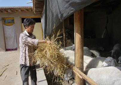凉州区清水乡养殖户张风琴正在喂羊。近年来,清水乡因地制宜,在不适宜搭建日光温室的村组发展暖棚养殖,增加农民收入。