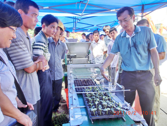 来自浙江台州的自动种苗机吸引了众多人参观。本报记者操戈摄