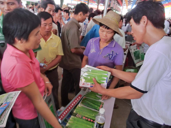 来自安徽省萧县新丰辣椒研究所的展台前异常热闹。该所连续8年参加这个展会,每年现场售出的辣椒种子都在7至8万元。本报记者操戈摄