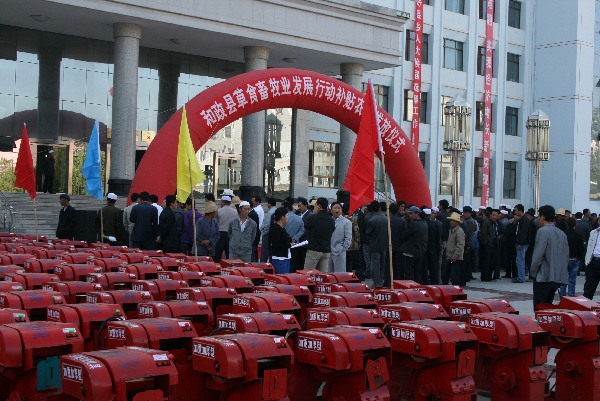 8月26日,和政县举行草食畜牧业发展行动补贴农机具发放仪式。现场为畜牧养殖户发放农机具167台。