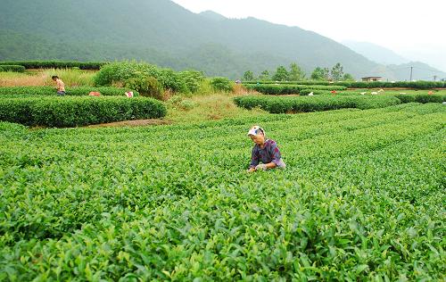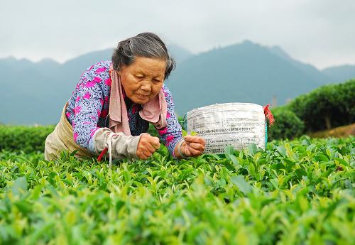 9月8日,茶农在广西昭平县的生态茶园采摘茶叶。