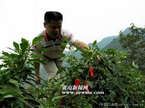 9月7日,歙县岔口镇农技人员洪建培在帮助菜农查看高山蔬菜成熟情况。