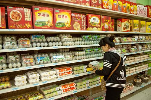 9月9日,顾客在长春一家超市内选购鸡蛋。新华社发(张楠摄)