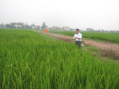 9月7日,庐江县农机局局长徐经良和县农机推广站有关人员到该县郭河现代农业示范区指导水稻机插秧工作。