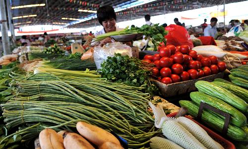 蔬菜零售商在海口一农贸市场出售蔬菜(9月9日摄)。
