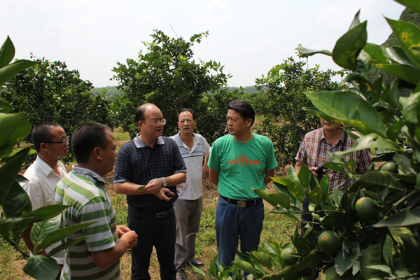近日,广西区水果总站站长李标、总农艺师梁侠等来到合浦县检查、指导水果生产发展工作,县农业局局长杨真荣及县水果办负责人陪同检查。