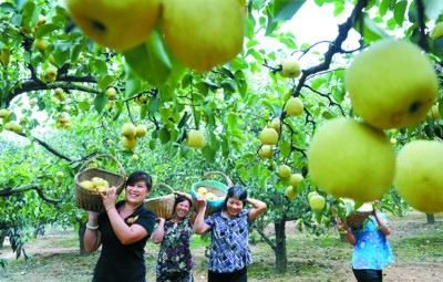 连日来,寿县八公山乡郝圩村农民抢抓晴好天气收获酥梨。这里独特的气候和优良的土壤条件生长出的酥梨,成为省内外市场的抢手货。目前,该村梨园达万余亩,1600余户梨农户年均纯收入达8万余元。
