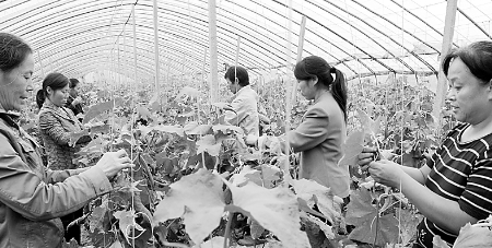 9月17日,内黄县张龙乡中流河村搏海农民合作社社员正在管理大棚丝瓜。近年来,内黄县发展各类农民专业合作社达300余家,带动7万余农户入社。 付海鹏 摄