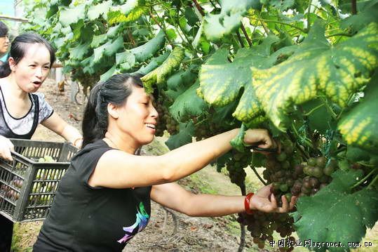 9月18日,不少临安市民来到锦城街道横街村村民马传德的葡萄园里,亲手采摘优质新品迟熟葡萄,分享甜蜜和欢乐。据悉,横街村目前已拥有500亩无公害葡萄基地,年产葡萄10多万吨,横街葡萄名气日盛,不仅吸引了各地经销商主动上门收购,还引得“馋嘴”的市民纷至沓来,边游边采,横街村也由此走出了一条依托葡萄种植、促进农民增收的新农村建设之路。