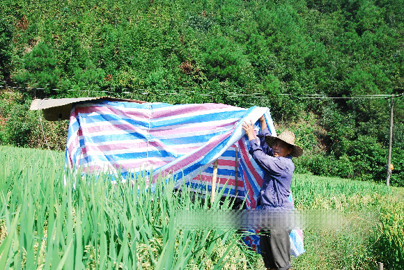 自9月初开始,村民方锡荣在自家的四亩稻田边,搭起了一个简易的工棚,在田埂边的电杆上安装了照明灯。每天夜里,他隔一个时辰,便来回在山坳边的田间巡逻一次,随后燃放一次鞭炮,起到威慑野猪作用。方锡荣说,就在守候的第二天深夜,一只100多公斤重的野猪下山后,一看到稻田边有人在执勤放哨,还起放鞭炮,便转个身子往树林里逃了,从此再也没有发现野猪来田间偷吃稻谷了。