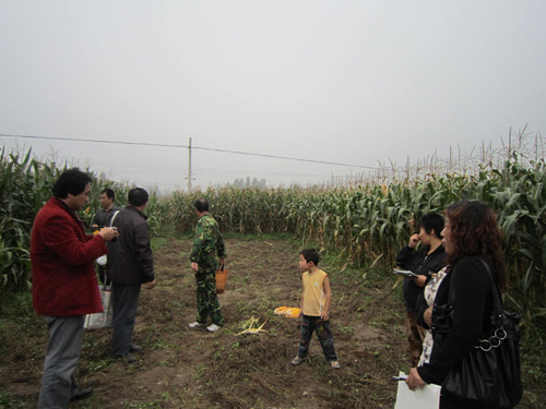 2011年9月13日,易县农牧局玉米产业组组织农广校、技术站、农技推广中心、科教站部分技术人员与示范户、玉米种子提供商、当地村干部到西陵镇晓新村、南大地两村,对新引进春玉米示范品种进行测产。