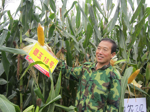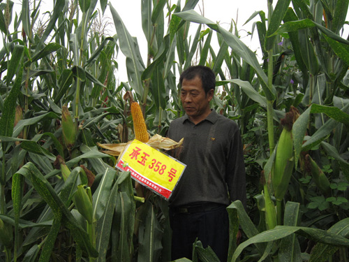 测产人员深入到田间地头,对春季安排的宽城60、丹玉96、三北8、中农221等10个春玉米品种进行了综合打分。首先根据春玉米整体长势、抗病性进行综合评定,然后每个品种选取有代表性区域进行测产。