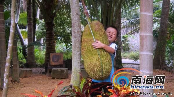 近日,琼海市石壁镇赤坡村的陈先生向南海网记者反映,说他家种了三年的菠萝蜜树长出了一个约50斤重的果实,对于三年龄的菠萝蜜树而言,结出那么大的果实“很是稀奇”,因此每天都有人光顾观看此果。
