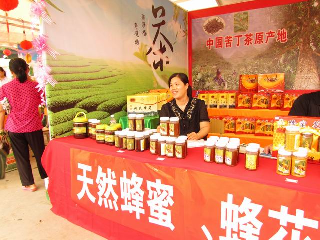 9月19日,2011年全国科普日活动广西“十月科普大行动”启动仪式暨第20届广西科技大集魅力扶绥科技文化节,在崇左市扶绥县文化广场开幕,现场丰富多彩的科普活动、科普展示吸引着人们的目光,新颖的名特优产品让广大群众大饱眼福和口福。在科技文化节上,大新县展示区里的许氏蜂苑一系列天然蜂蜜、蜂花粉成为此次大集的亮点。众多喜爱蜂蜜的群众,特别是讲究养颜爱美的女士围在展区前咨询和选购蜂蜜产品,当天,参展客商带去的大新天然龙眼、荔枝、荷花等蜂蜜、蜂花粉被抢购一空,客商也赚了个盘满钵满。