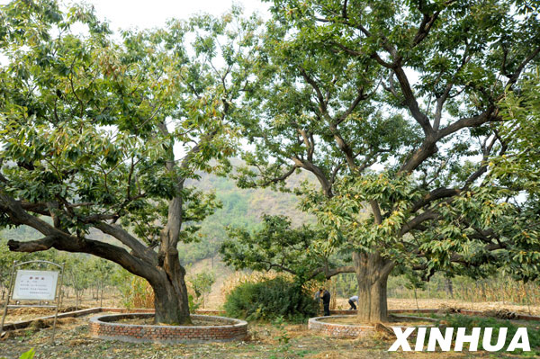 这是河北省宽城满族自治县碾子峪镇大屯村两棵树龄达708年的夫妻板栗树(9月26日摄)。