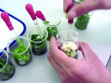 接下来便进入最繁琐的冲洗阶段,他拿出13个吸管,在每个量杯里面放入一根,接着就拿起一个装了生菜的量杯。只见他先用吸管从杯底吸一下水,再 将水滴在菜叶上,如此反复冲洗,不一会杯子里的水也变成了绿色,他苦笑着告诉记者:“蔬菜质检最大的特点就是琐碎,这就是女人干的活啊。按理说最好不要弄 出叶绿素来,每种蔬菜样本要冲洗50次。一直到将叶子上的农药残留冲洗下来,将相当于洗菜的效果,昨天采集了18种蔬菜,这就意味着要冲洗900次水。我 干了十几年了,自己都不知道捏了多少下吸管了。 ”