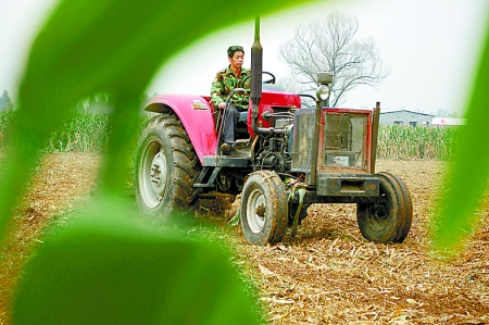 新乡黄河滩区农民利用农机粉碎秸秆还田施肥。近几年,当地农民农机装备投入力度越来越大,农民重体力手工劳作现象得到很好改善。 陈更生 摄