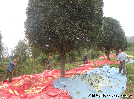 这是龙怀乡庆云村民忙于采摘鲜桂花,转销外地提取桂花精油及香料等。近年来,荔浦县龙怀乡农民充分发挥山区优势,利用荒坡种植桂花树面积达5000多亩,既为各地园林化建设提供了大量绿化树,全乡农民通过采摘鲜桂花人均增加收入超200元。