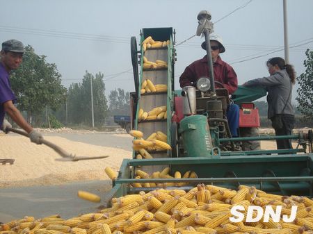 据介绍,采用全自动玉米脱粒机进行作业,每小时可以脱粒5-8吨玉米,脱粒干净而且玉米芯不碎,采用离心风机把玉米粒中尘土等杂质吸走送入自置口袋,工作场地不暴土扬场,玉米联合脱粒机还对玉米芯进行一次筛选处理,使玉米芯中无杂粒,侧面具有自动上槌功能,从下面直接送入进料口,省工省力,深受农民欢迎。