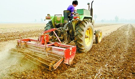国庆期间,武陟县宁郭镇张庄村农民抓住当前土壤墒情良好的有利时机,旋耕土地,备播小麦。