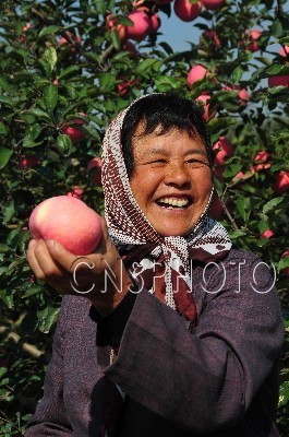 龙口市兰高镇沙村姚兴渭种的苹果个大、美观、口感也好。