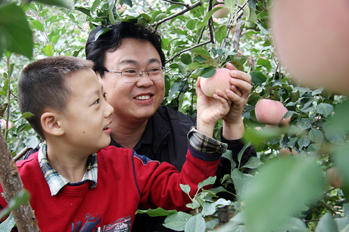 “我们带孩子来采摘园,呼吸一下新鲜空气,闻一闻泥土的芳香,体验农家劳动生活,亲近大自然,进园采摘要的就是这丰收的感觉啊。”10月4日,在山东省沂水县泉庄镇石门采摘园里,带着妻子和孩子来采摘的临沂游客李相庆高兴地对笔者说。