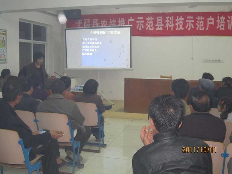 武强县农牧局抓住“三秋”农业生产关键时期,充分发挥科技对农业生产的支撑和促进作用,于10月4日至8日在北代乡杜林村、街关乡曹庄、孙庄乡大王庄等高产创建示范方、试验示范基地开展农业科技服务工作。围绕大秋作物管理、小麦播种工作和麦田机械化深松等内容,要求农业科技人员全力以赴,深入到农业生产第一线,进行现场指导,同时在不占用白天农忙时候,利用晚上的时间开展农业生产科技培训,确保秋季农业生产丰收、确保种足种好今秋小麦。