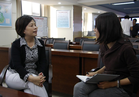 江西省气象台首席预报员许爱华接受本网特派记者采访(孙楠 摄)