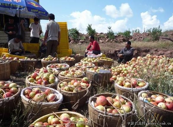 在县城的街市,随处可见个儿硕大、红艳艳的石榴果销售。县城的“石榴一条街”上,果商正忙碌着把一箱箱的石榴装上一辆辆卡车外运。