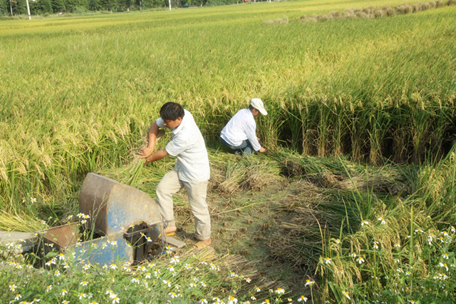 村民在收割晚稻