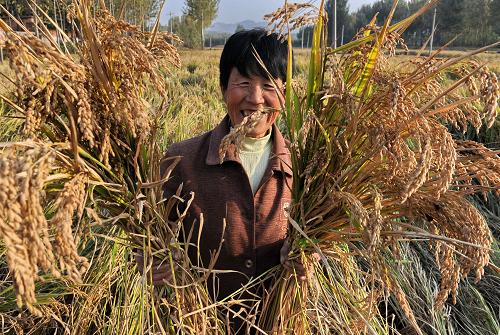 10月19日,河北省顺平县神南村一位农民在收获水稻。记者从河北省农业厅了解到,今年河北省夏粮喜获丰收,总产247.3亿斤,比去年夏粮产量增加5.74亿斤,实现了连续5年增长。目前河北省大部分秋粮已收获完毕,全年粮食总产有望达到580亿斤。新华社记者 杨世尧 摄