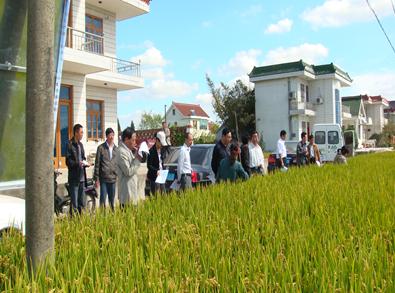 10月19日,如东县农学会组织相关专家对2011年秋熟作物水稻试验示范展示品种进行考察论证活动,包括水稻品比试验、水稻品种展示、镇稻11号、武运粳24号、镇稻14号、镇稻671、南粳41号、南粳5055示范方。专家们从品种的抗性、田间长势长相、适应性等方面进行了客观的评价,从高产、稳产、广适性,如东水稻推广品种的延续性,一致认为如东2012年水稻主推品种以镇稻11号、武运粳24号为主,同时积极引进试验示范迟熟中粳水稻新品种,为如东水稻生产增添后劲。