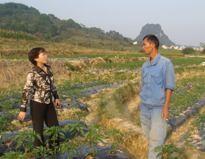 2011年10月19日,崇左市农业局黎萍副局长在崇左市农业技术推广站技术人员的陪同下到天等、大新等县检查指导秋冬种生产。